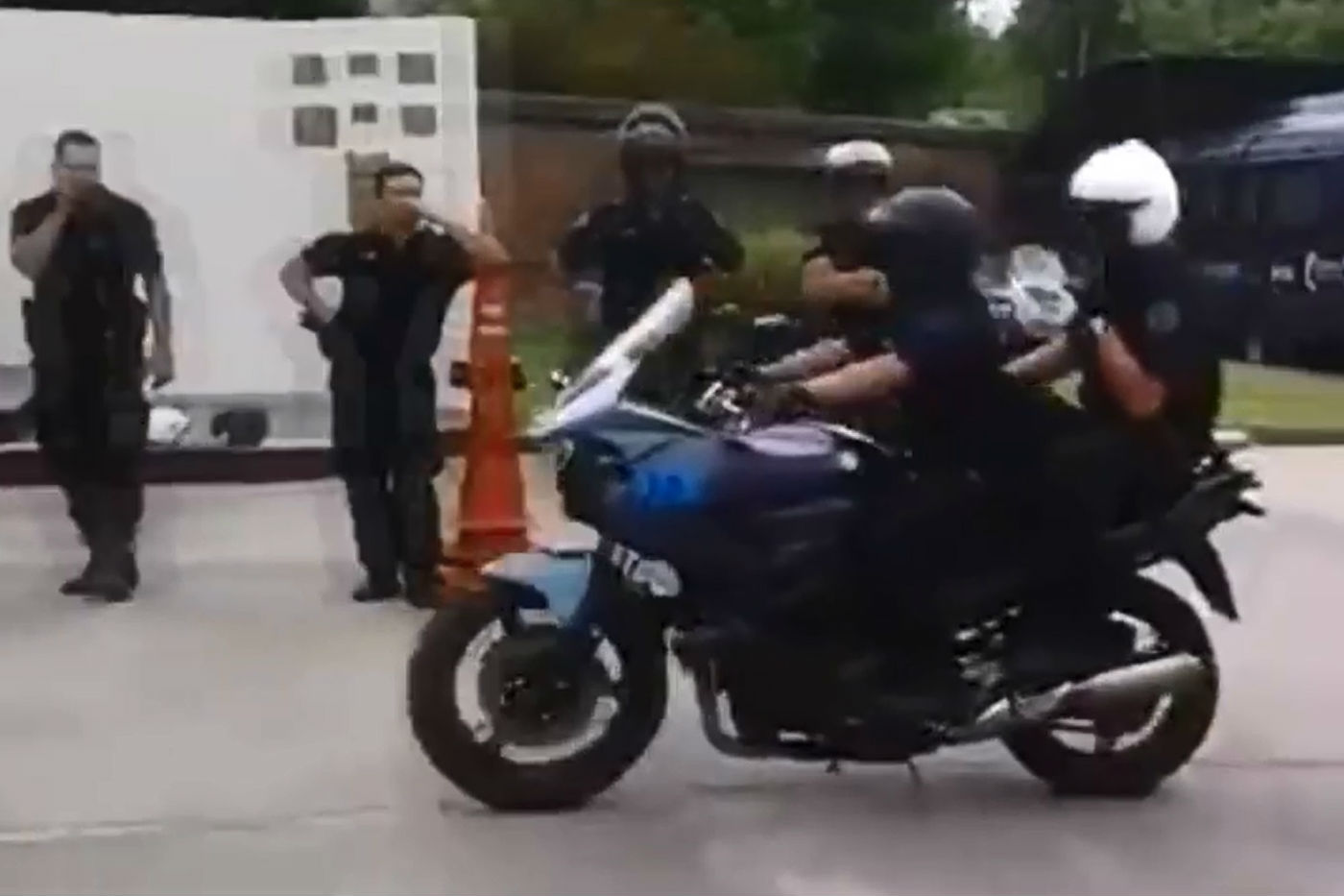 PAS sûr que nous ferions la queue pour un cours Bike Safe au Brésil après avoir vu cette performance. Première leçon : regardez-moi pendant que je… wo, woah, WAAHHH !